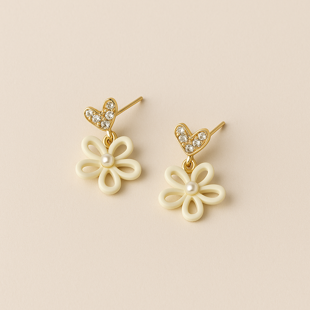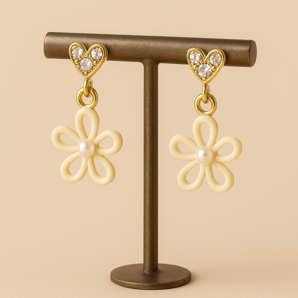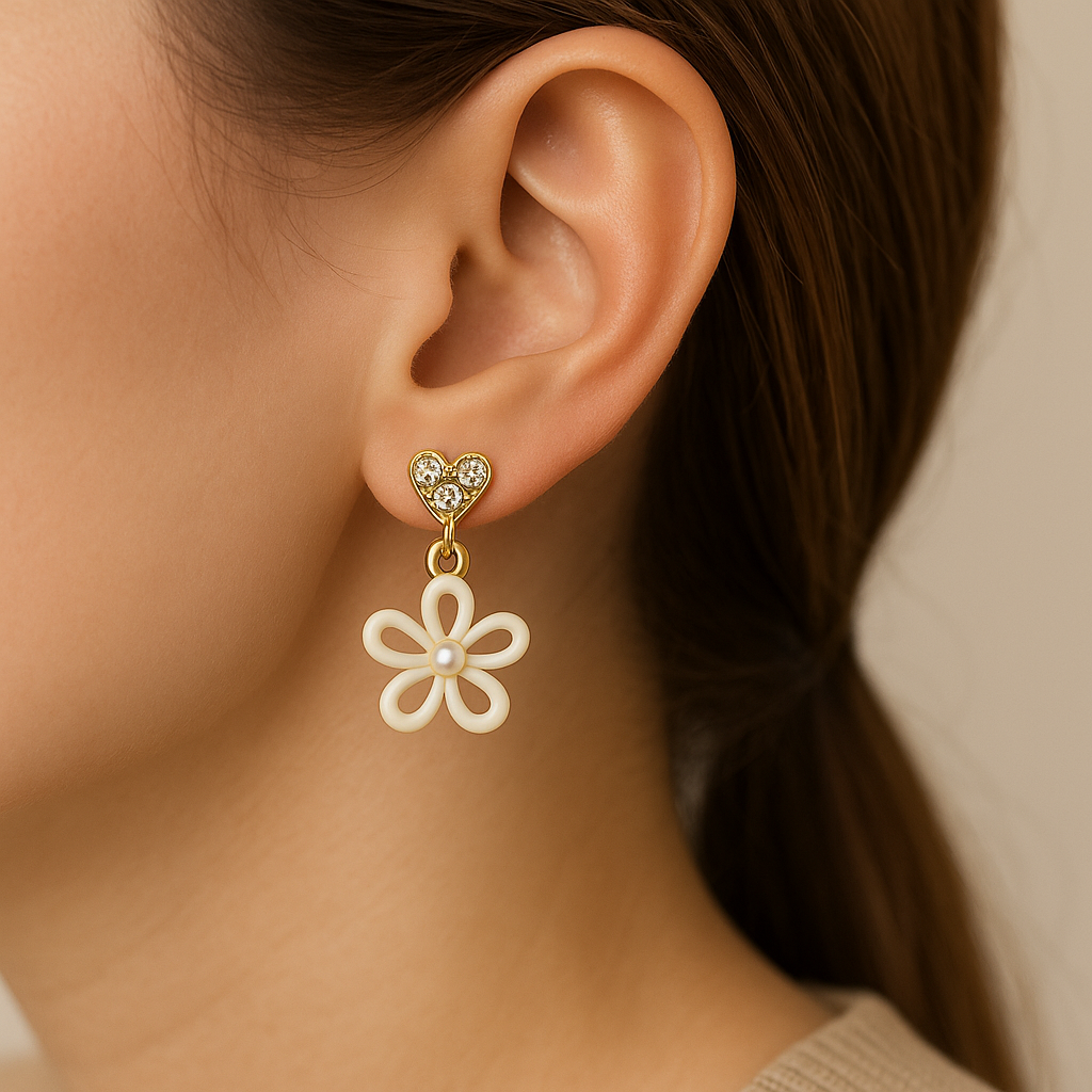 • Design: Crystal-studded heart top with a dangling open-petal flower